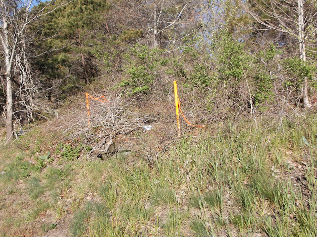 On the 4th of May I was walking from here to the post office to either return a Netflix dvd or mail an important document. On the way I saw a familiar figure to my left waving to me- I waved and we chatted for a bit. He was waiting for the MassDOT surveyor to show up by 10am. We all know what that means- show up early and wait for a late arrival. It was cloudy overcast windy cold damp day. But Scott is a lively talker and easy to converse with him. But I did have to get my mail mailed. The story was he was called by the police that someone reported an open sewer on Conservation property. I pass by that area twice a week and no open sewers to my eyes. I would check it out. I spy it and it is just a dry well probably for run off from the property above. The road below that , rt 28, used to flood along there during heavy rain storms. oh well. I mail my mail and head back after taking two pix. one of the "sewer" the other of a grate which I thought would be the complaint- those are sometimes upended. So I see Scott still waiting we chat some more. The surveyor shows up and the three of us go over to the "sewer". Lots of talk about the State being slow moving but they will check it out and let him , Scott, know who is responsible etc.